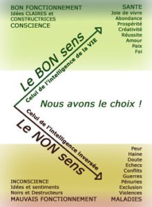 En fonction de quoi, notre corps, ce prodigieux laboratoire à VIVRE, ne peut plus remplir ses fonctions dont l’une des plus importantes est celle de nous relier à l’Intelligence Universelle chargée à travers notre état de conscience, celui de nos sentiments, de nos idées et de notre énergie, de nous guider et de nous informer tout au long de notre existence pour faire de notre vie et de celle de la terre, ce paradis de bien-être, d’amour, de paix, de créativité, d’abondance et de bonheur que nous cherchons tous si loin, alors qu’il est si simplement à notre portée.